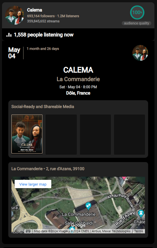 Palko generates engaging promo videos, comprehensive social and conversion-focused pages for new listeners and ticket sales, seamlessly integrated with all major social media channels and audience demographics.